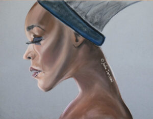 Voici un portrait aux pastels à l’écu sur papier mi-teintes. Une envie de mettre de la couleur dans une journée grise et humide!