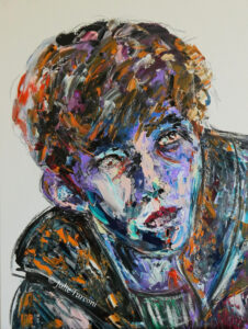Voici donc un portrait librement inspiré du drama sud-coréen « Just between lovers » et du visage de l’acteur Lee Jun-ho, dans l’énergie du moment, sans chercher de ressemblance (c’est surtout pour placer le visage que je me sers d’une référence, autant que pour aller chercher une émotion qui m’interpelle) ni aller dans les détails (le couteau ou spatule ne le permettant pas). C’est un exercice de lâcher prise. Il faut aussi savoir s’arrêter à temps, sous peine de voir les couleurs se mélanger en un brun douteux… 😉