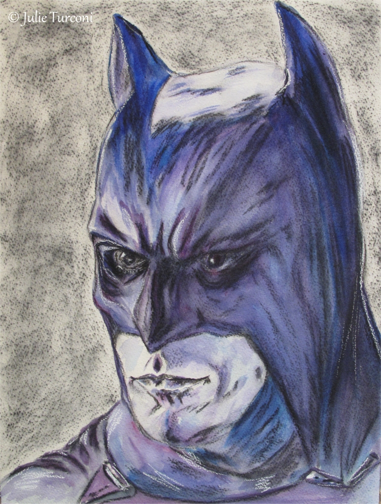 - Batman ! (Christian Bale), aquarelle et fusain, 12 x 16 po, 2017