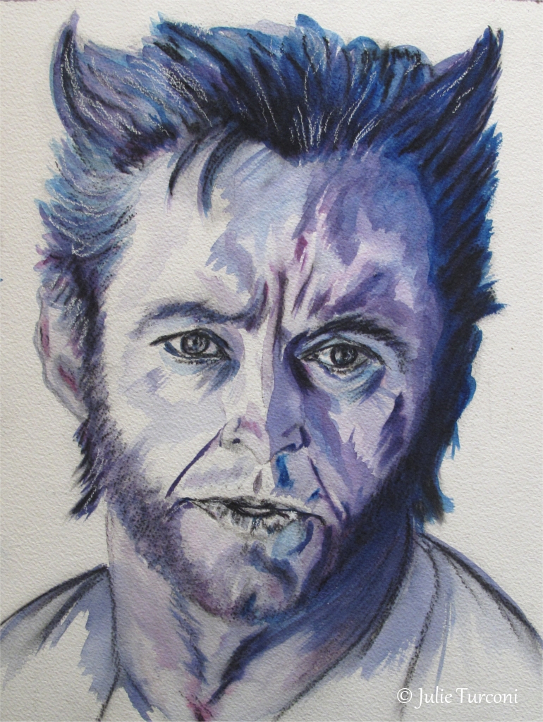 - Lycanthropie (Wolverine in X-Men), aquarelle et fusain, 12 x 16 po, 2017
