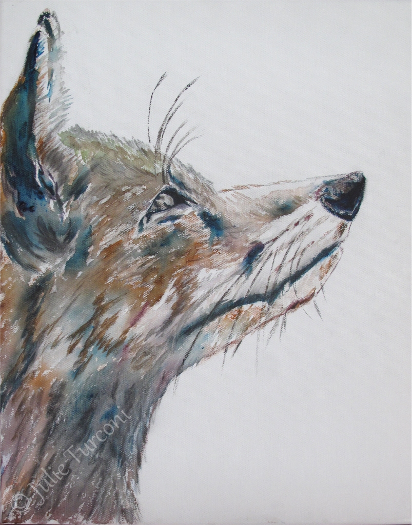 - Le goupil, aquarelle et fusain, 12 x 16 po, 2016, DISPONIBLE