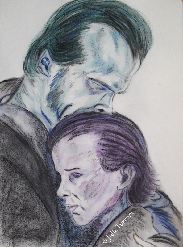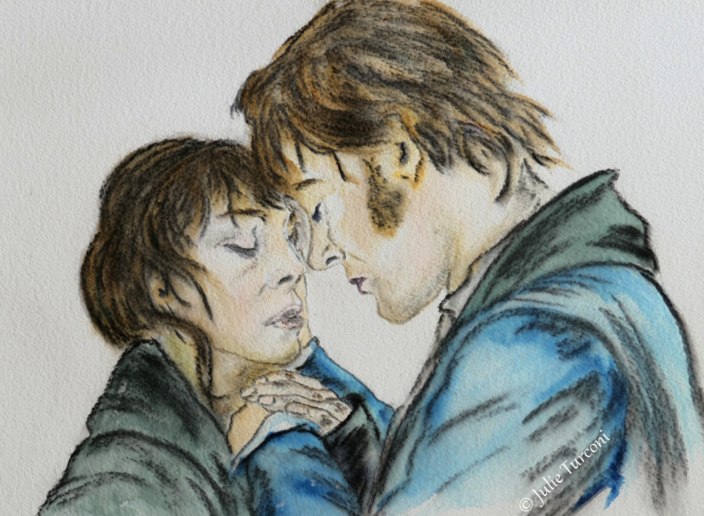 - Le baiser (d’après la série TV « Buffy the Vampire Slayer), aquarelle et fusain, 16 x 20 po, 2016