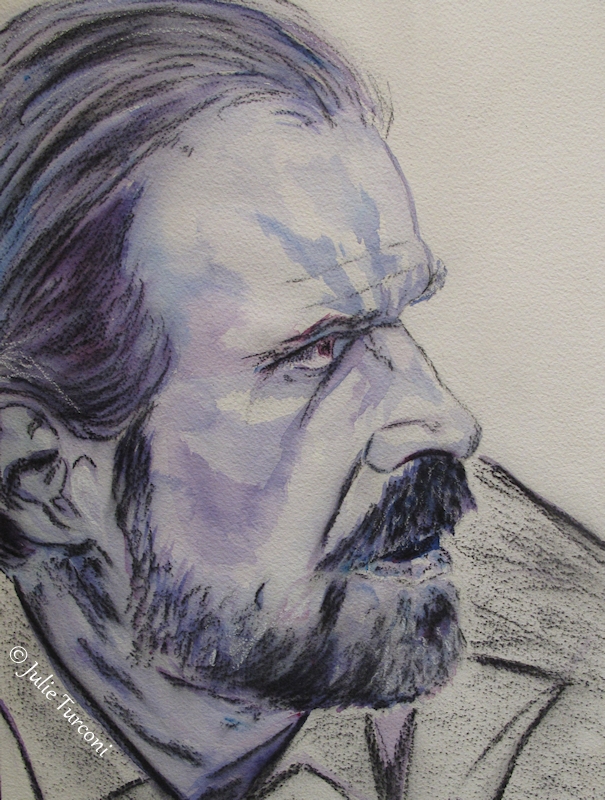 - Mathew Moody (personnage historique de Terrebonne), aquarelle et fusain en direct, 12 x 12 po, 2016, VENDUE