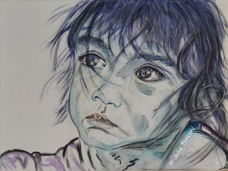 - Un regard franc – aquarelle et fusain sur papier – 12 x 16 po