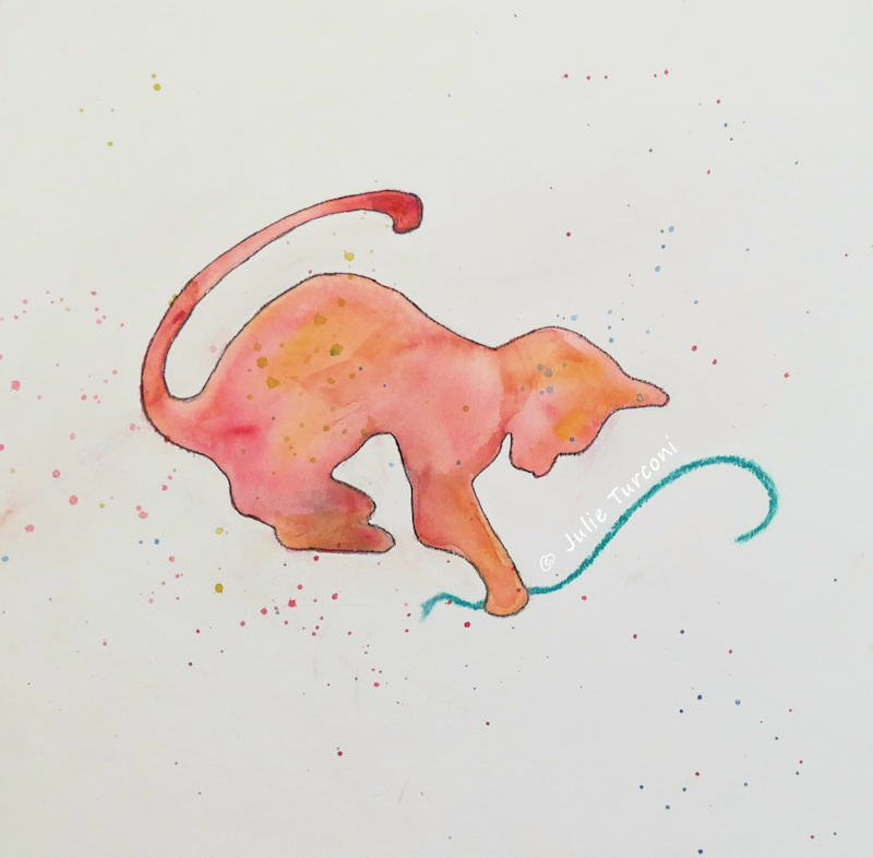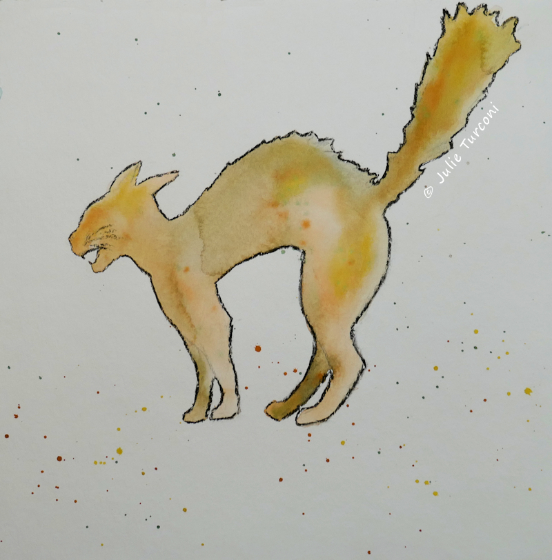 - Silhouetto of a cat II – aquarelle et fusain, 12 x 12 po – 2019