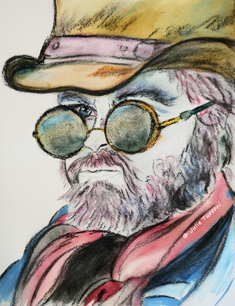 - Le poète des temps gris, aquarelle et fusain, 12 x 16 po, 2016