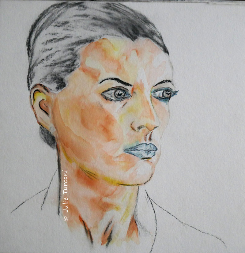 - Marion – aquarelle et fusain, 12 x 12 po – 2019