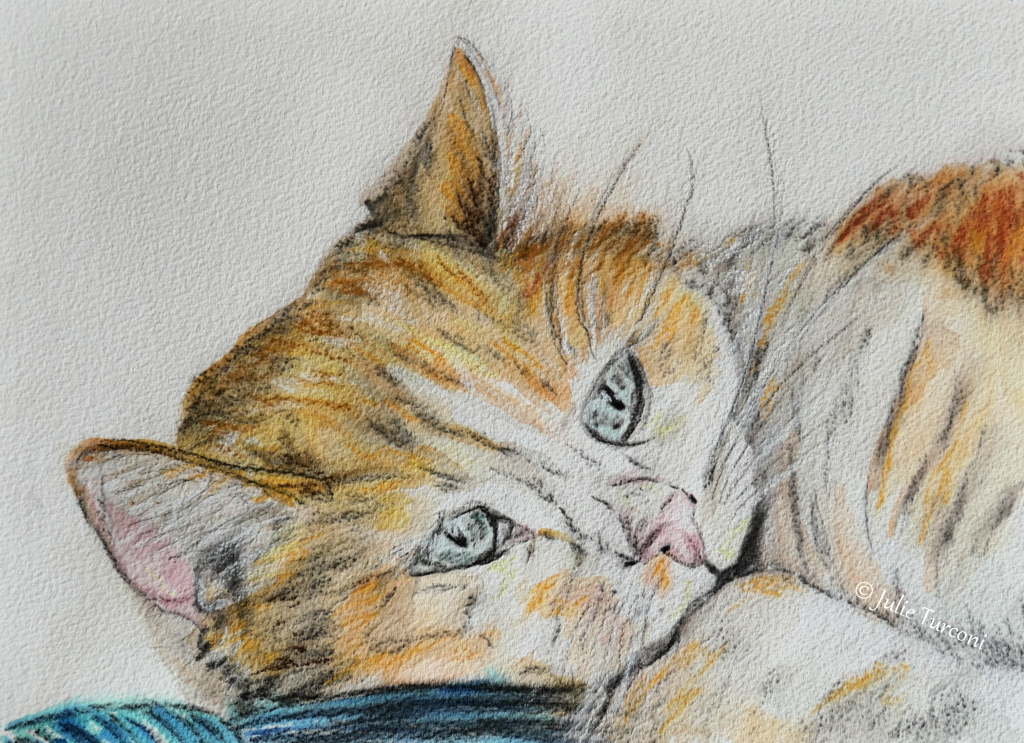 - Un câlin s’il te plait! (peinture en direct) – aquarelle et fusain – 12 x 16 po