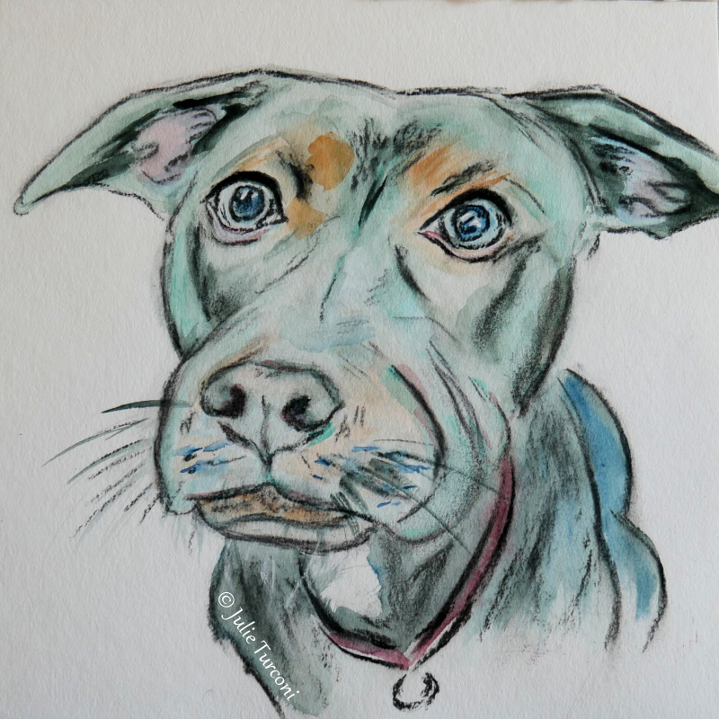 - Maya – aquarelle, fusain et pastels – 10 x 14 po – 2019 – coll. privée