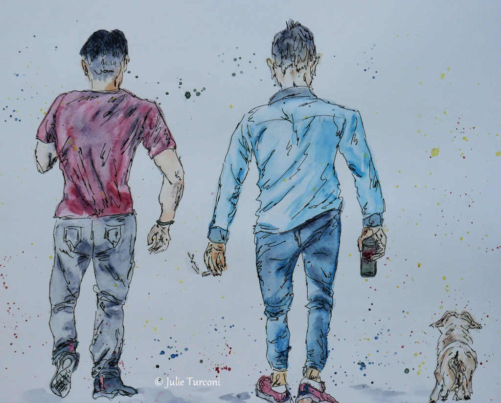- Les meilleurs amis du monde – aquarelle et encre sur papier Fabriano – 11 x 14 po