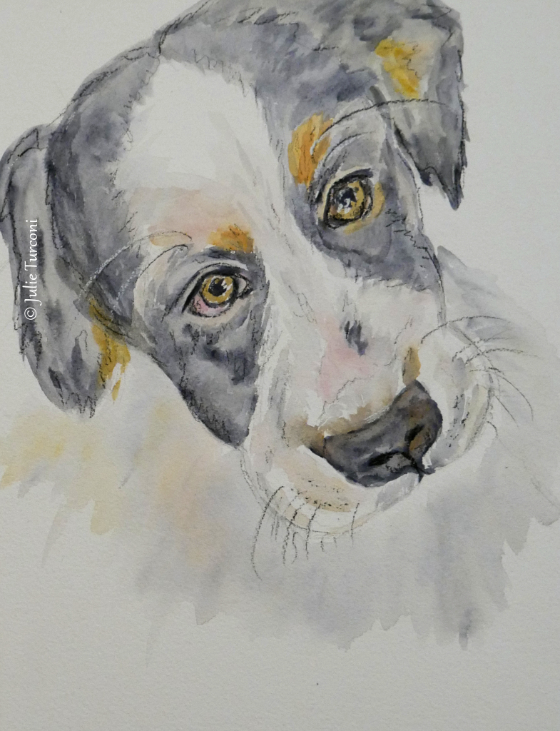 - Sherlock, aquarelle et fusain, 12 x 16 po, 2016