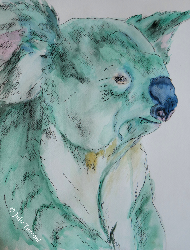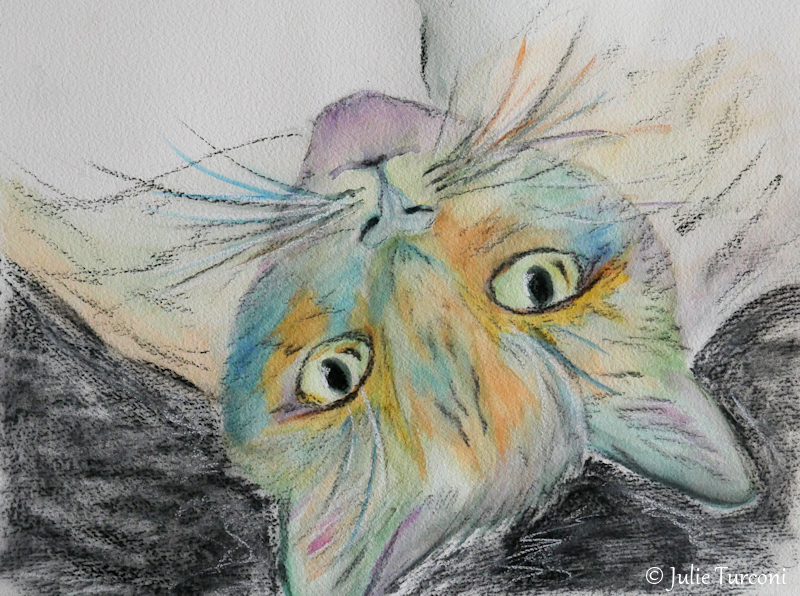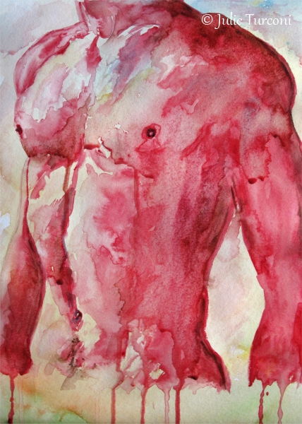 - Would you look at me? – aquarelle, pastels et encre sur papier – 12 x 16 po