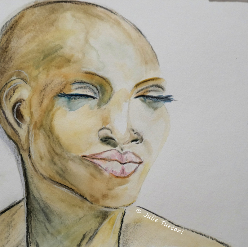 - Anne – aquarelle et fusain, 12 x 12 po – 2019, DISPONIBLE