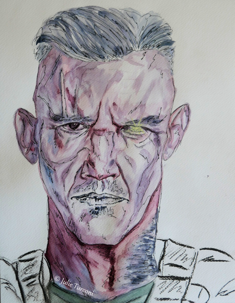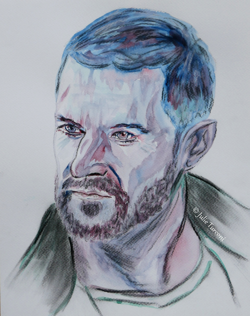 - John Murphy (d’après la série TV « The 100 »), aquarelle et fusain, 12 x 12 po, 2016