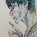 - Being different (Johnny Depp in Edward Scissorhands), aquarelle et fusain sur toile, 16 x 20 po, 2018