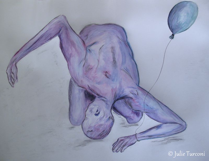 - Comme une envie d’envol (exploration au ballon 1), aquarelle et fusain, 19 x 24 po, 2017