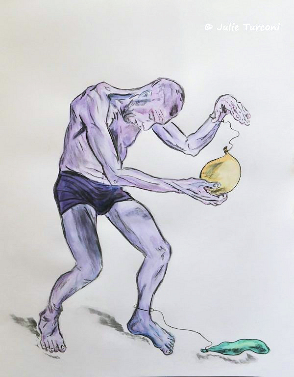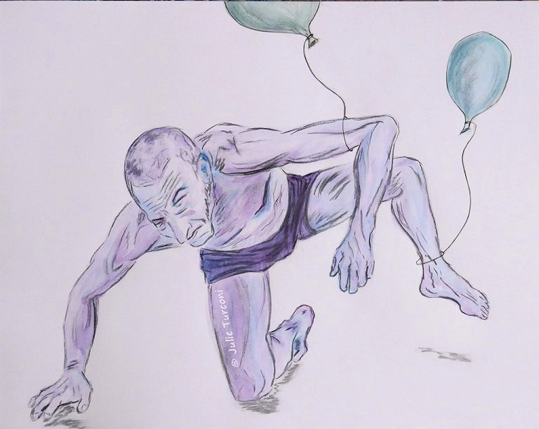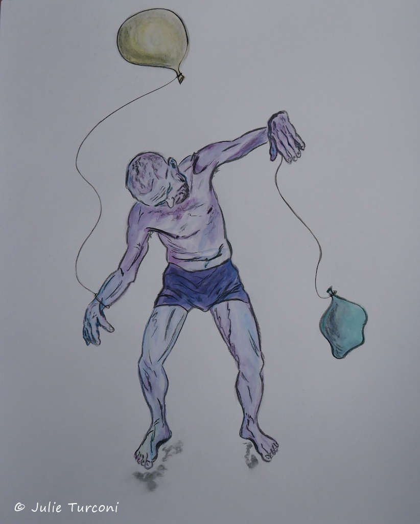 - Exploration aux ballons 2 – aquarelle et fusain, 19 x 24 po, 2017